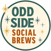 Logo of Odd Side Ales featuring stylized text and hop illustrations on a black background.